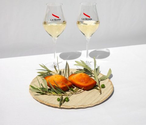 The salty power of anchovies, the liveliness of capers, and the intensity of olives find a balancing counterpoint in the fruity freshness and roundness of Mumm Cordon Rouge.