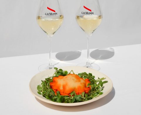 Brown butter and grated walnuts add depth and texture, perfectly complementing the finesse and liveliness of the Cordon Rouge champagne.