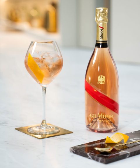 ワイングラスの3/4に氷を入れ、マム アイス エクストラを注ぎ、軽くかき混ぜます。ピンクグレープフルーツ2個を添えます。